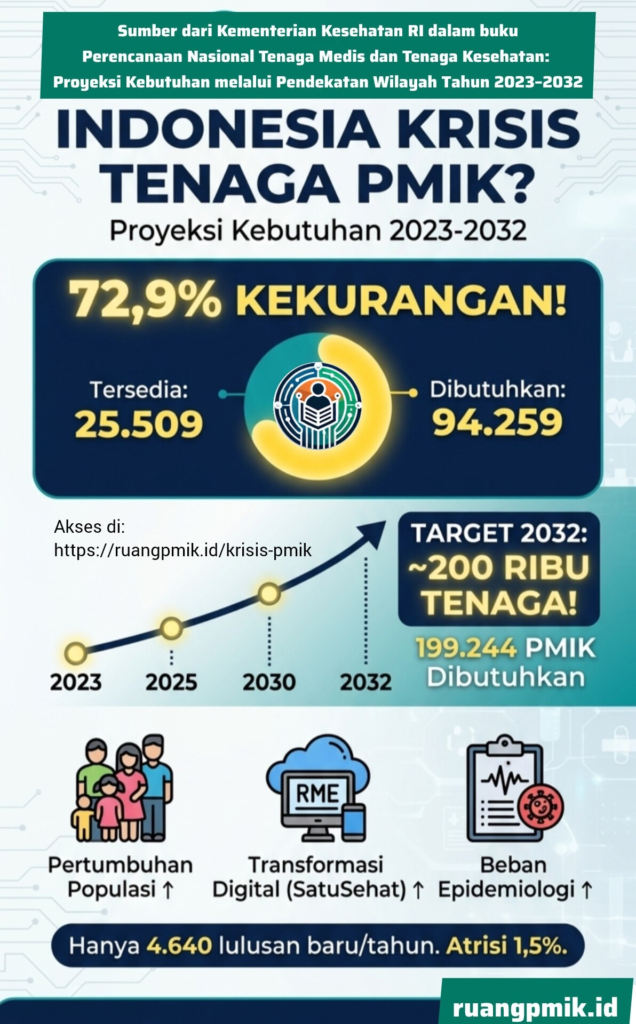 Tag: Analisis Data Kesehatan, Digital Health Indonesia, Health Information Management, HIM, Info MIKes, Karir PMIK, Kebutuhan Nakes, Kemenkes, Kesehatan Digital, Lowongan Kerja Tenaga Kesehatan, manajemen informasi kesehatan, Masa Depan PMIK, Pendidikan Rekam Medis, Perekam Medis, PMIK, Proyeksi Tenaga Kesehatan 2032, Rekam Medis Elektronik, RME, Ruang PMIK, Ruang PMIK Web, SatuSehat, SDM Kesehatan Indonesia, Sobat MIKes, Strategi Karir PMIK, Transformasi Kesehatan